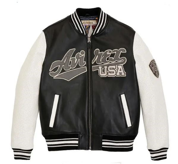 Avirex Script USA Varsity Leather Jacket- Black