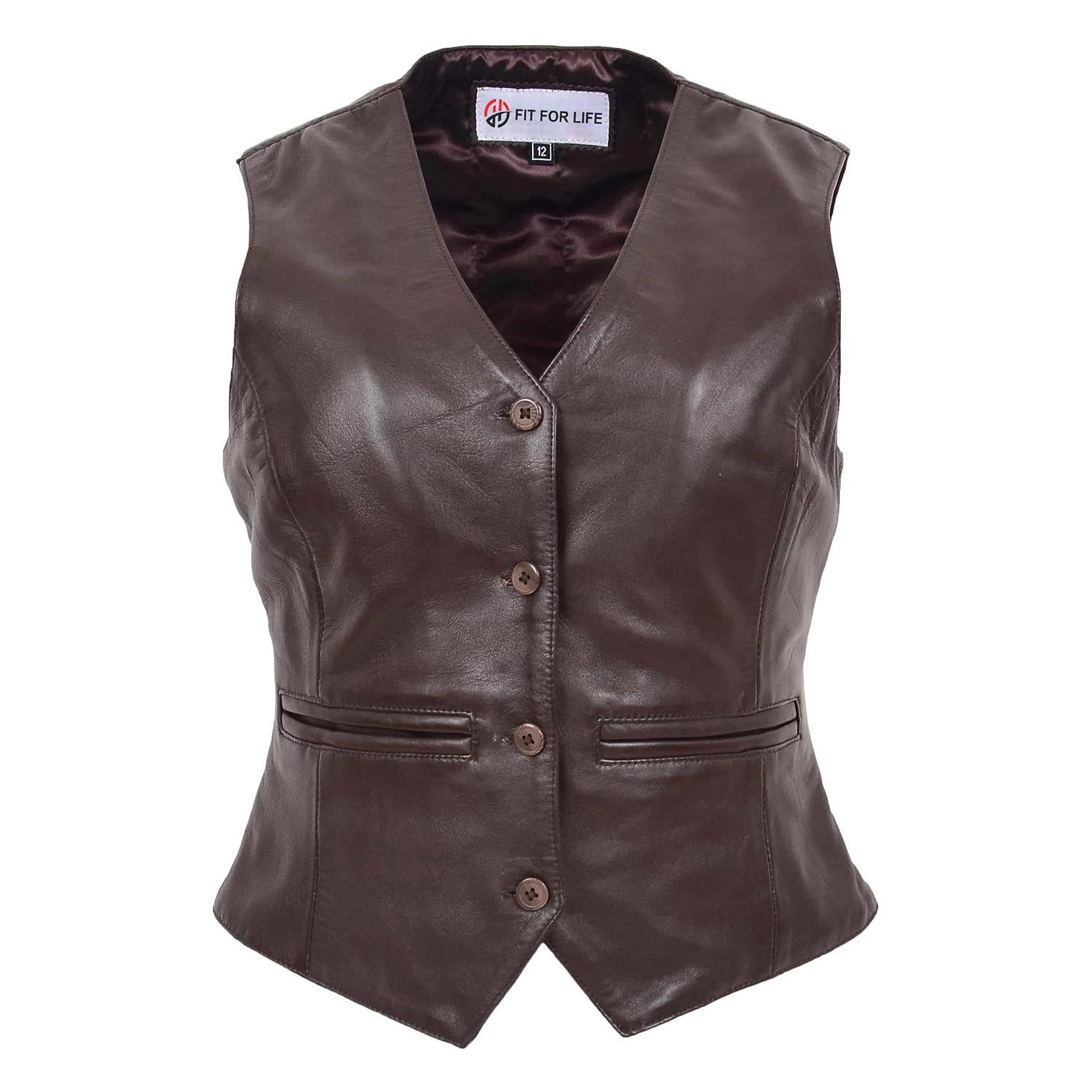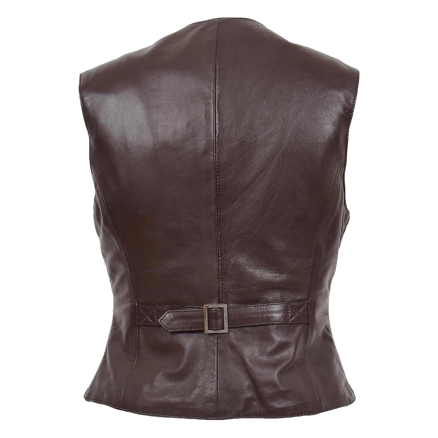 Womens Leather Classic Buttoned Waistcoat Rita Brown